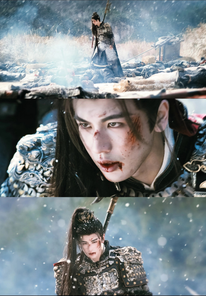 在《逐玉》中,张凌赫饰演的谢征凭借战损妆、雉翎银甲等操办强化落空感与凌厉气场,雪地咳血、猪圈抬眸等场景被赞"壁纸级神图"。
