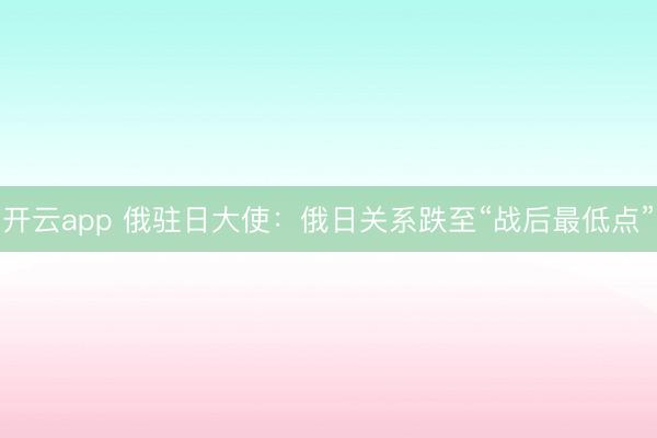 开云app 俄驻日大使:俄日关系跌至“战后最低点”