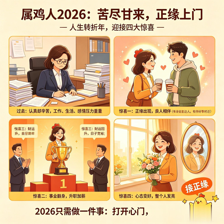 属鸡东谈主,你听好了——所有这个词的苦,王人不会白吃。2026年,你要苦尽甘来了。