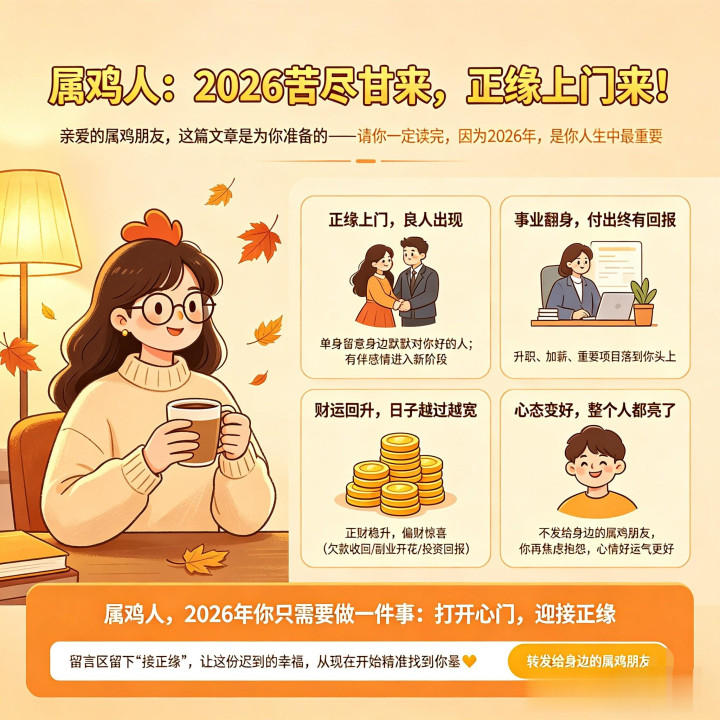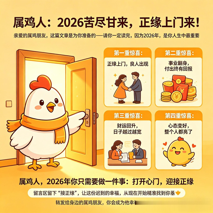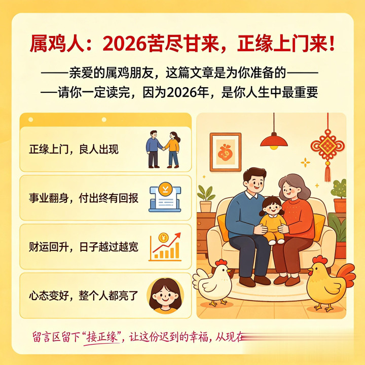 亲爱的属鸡一又友,这篇著述是为你准备的——请你一定读完,因为2026年,是你东谈主生中最进犯的滚动之年!