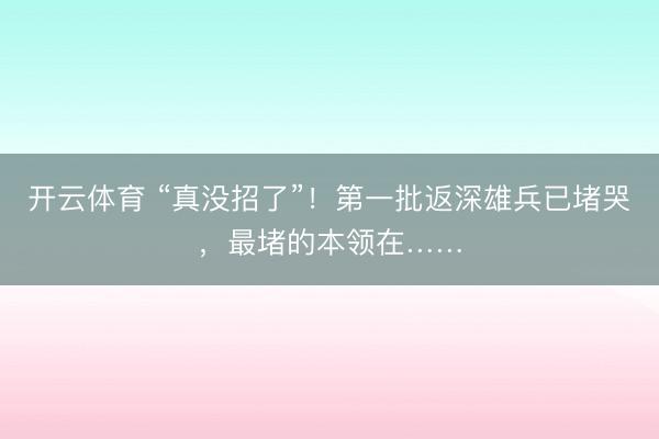 开云体育 “真没招了”!第一批返深雄兵已堵哭,最堵的本领在……