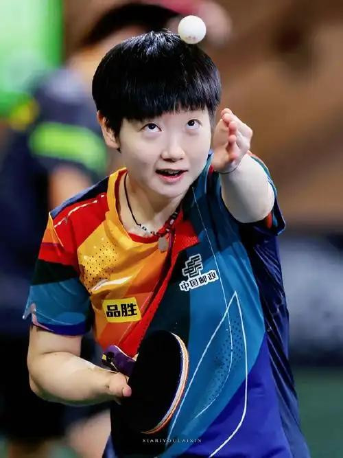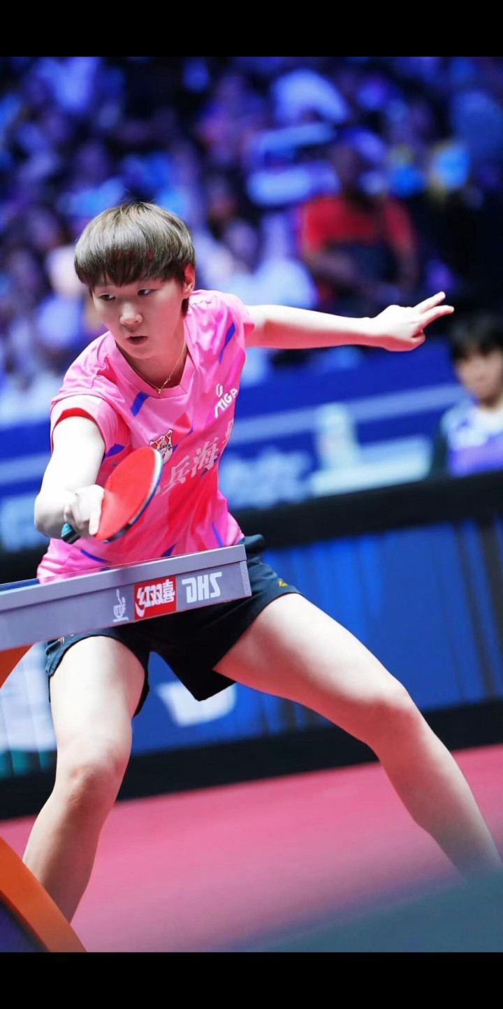 再看孙颖莎,她跟王曼昱完全是两种画风。