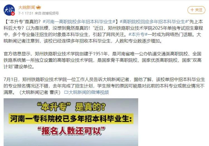 张雪峰淳厚反复强调,专科报考的第一优先级,便是选能专升本(专本连读)的院校,这亦然他给专科考生的中枢新想路。