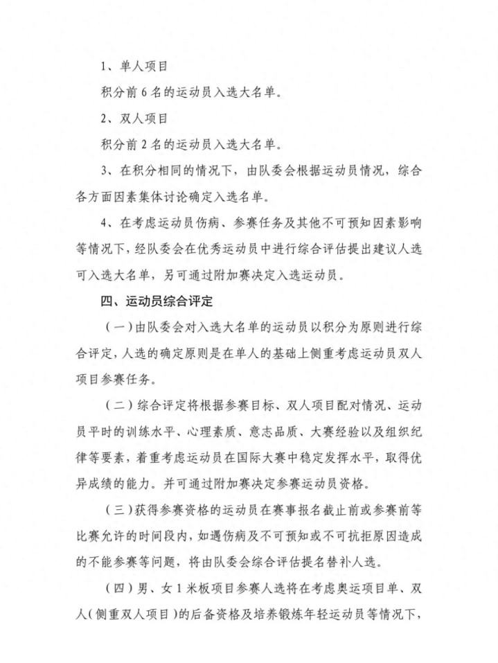 遴荐赛的本事蔓延3个多月,改成队内不公开比赛,何况如故比两次。从上届的遴荐赛前四名投入候选名单,造成前六名,临了由队委会从中6选2。其中,现象出色的陈芋汐笃信占据一席,而另一席的最好东谈主选等于全红婵。