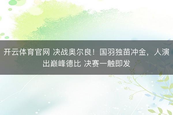 开云体育官网 决战奥尔良!国羽独苗冲金,人演出巅峰德比 决赛一触即发